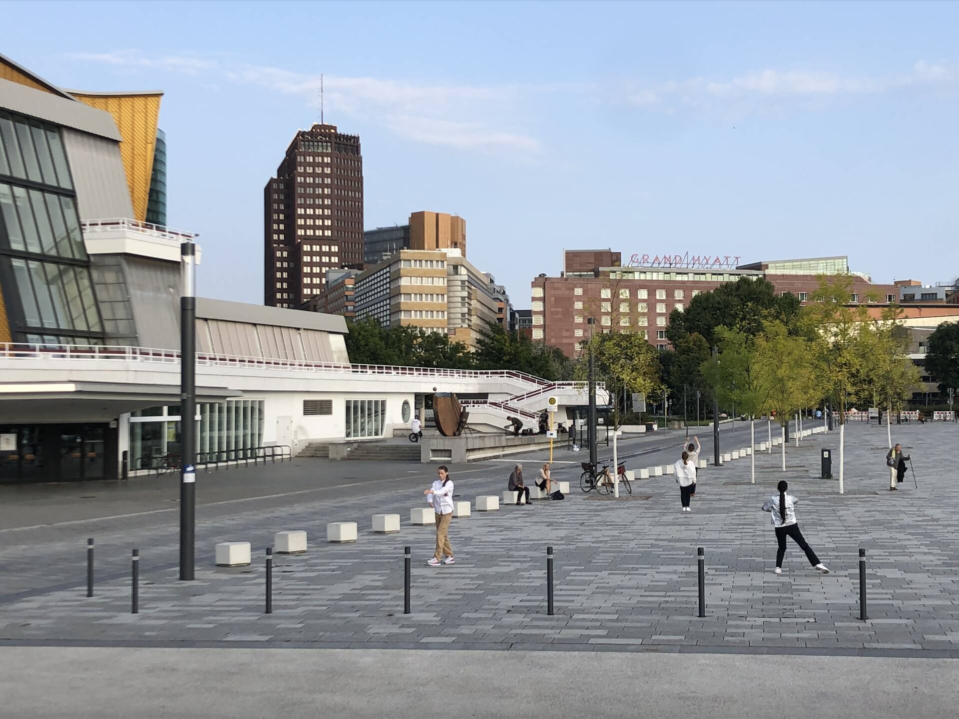Our second location in public space was the Scharoun Square next to the Philharmonie, which Nuria Hoeyng had already envisaged a year ago. Scharoun Square is fascinating because of its shape and the buildings that frame it in a very open way, especially the Chamber Music Hall with its connection to the organic architecture of Hans Scharoun.