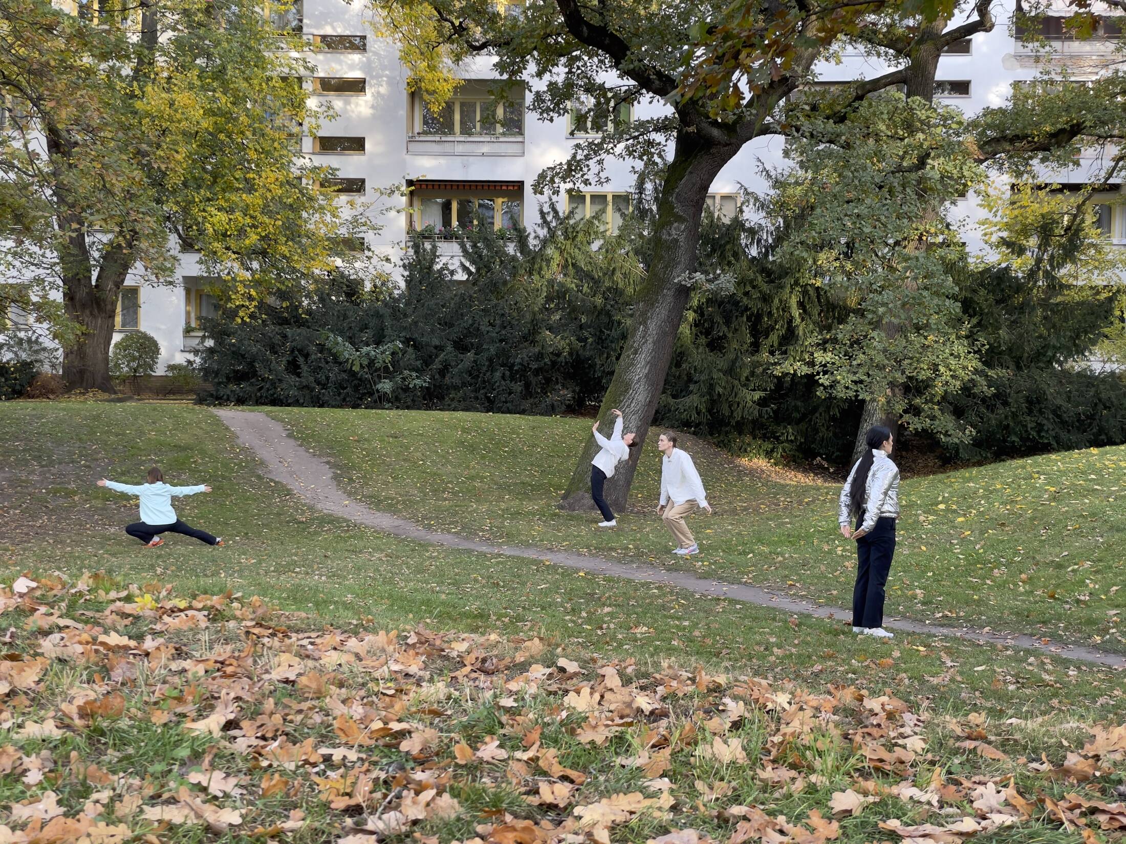 We are waves/lines/dots bound in three-dimensional fields. We move in relation to matter/ mass/ molecules/ elementary particles; sound/ noise/ light/ energy; state of progressive entropy/ time. We draw our attention to the interaction of everything. In this way, new compositions are created in different places in public space and the places change in perception for those who saw it, due to the fact that something took place there. The invisible imprints of movement remain, just as our DNA is still detectable in places even when we are no longer there.