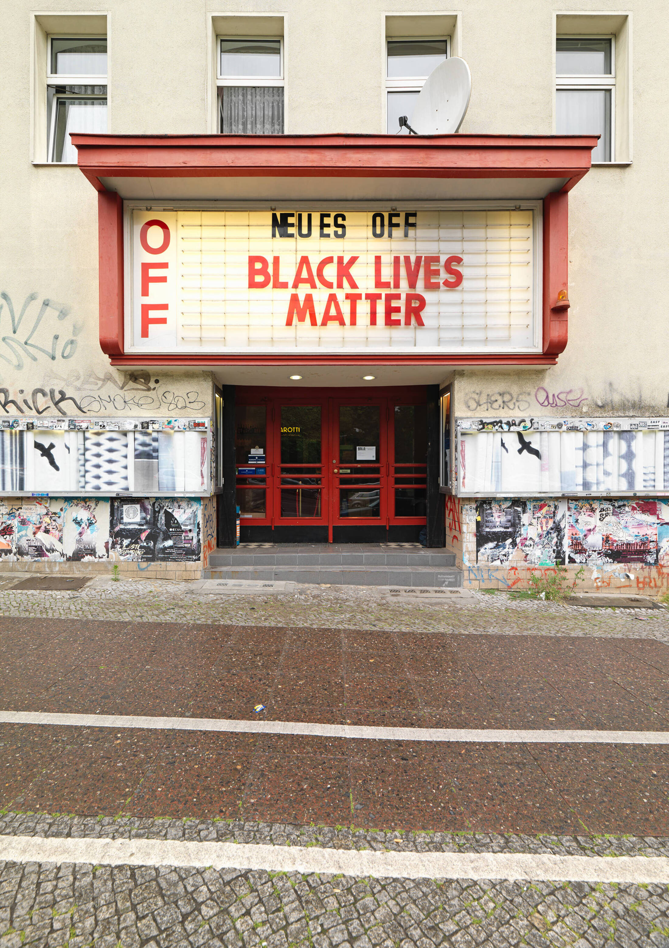 The artist Richard Thieler illuminates the current state of the Berlin movie theaters with his newest photographs. He confronts them with older images of better times as well as with a drawing of a film palace by Hans Scharoun. Thieler explores the architectonic shell, asks what it represented and what is happening right now with those buildings and its environment. His photographs document the current „Ersatz“ communication by the cinema operators, as it shows their strong willpower to step up against the vacantness of urban space and to actively shape our cultural and political life.